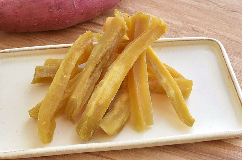 この商品に使用しているのは、水分量が少なく表面が白くなってしまう“二等品”の干し芋です。