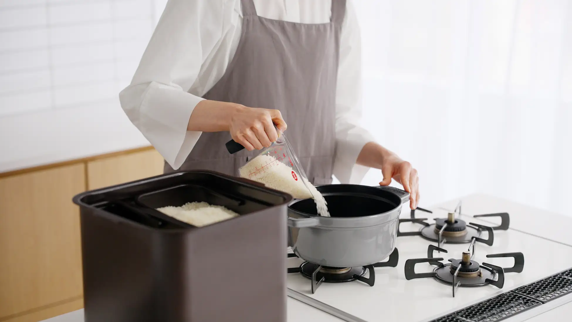 インナーケースで分けて真空保存できる、現代のライフスタイルに合わせた新しい米びつ