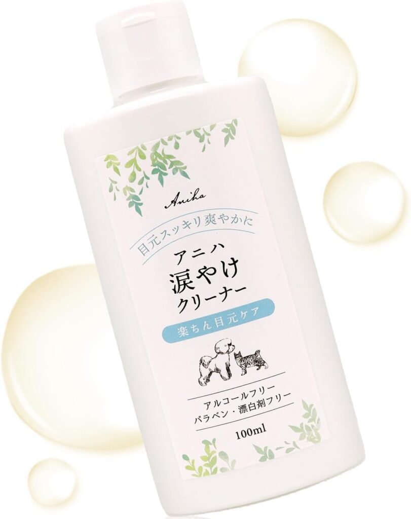 アニハの涙やけクリーナーは、獣医さんのアドバイスを受けて作られた刺激の少ない目元ケア製品です。特に良いのは成分の99%が天然由来で、敏感な目元にも使いやすいこと。重曹、フルボ酸、パパイン酵素が汚れを分解して涙やけの原因となる菌やニオイにも働きかけます。